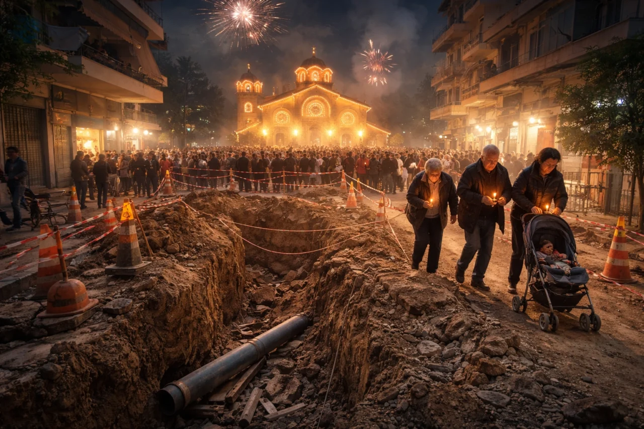 Ο πιστός δημότης μπορεί πλέον να ζήσει την εμπειρία της Μεγάλης Εβδομάδας με τρόπο βιωματικό. Θες να πας στην εκκλησία για την Ανάσταση; Θα περάσεις πρώτα από τρεις λακκούβες, δύο κορδέλες εργοταξίου και ένα πεζοδρόμιο που έχει εξαφανιστεί μυστηριωδώς. Είναι κάτι σαν προσκύνημα, αλλά με περισσότερη άσφαλτο και λιγότερη οργάνωση.