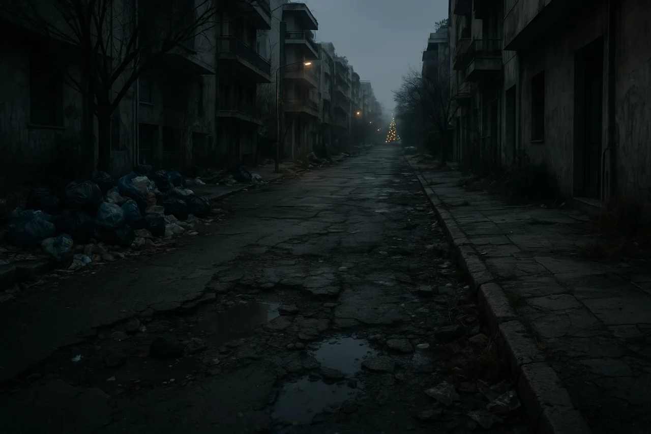 Φαντάσου όλο αυτό το τοπίο. Την πόλη μέσα στη μιζέρια, τη βρώμα, το σκοτάδι και την εγκατάλειψη.